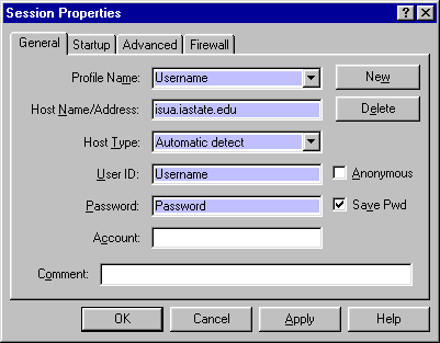 If you wish to connect to the Server using WS_FTP, available here, follow these steps: